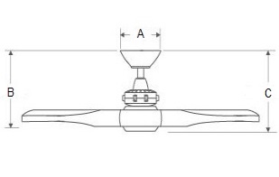AviationAmerican designed and engineered Material: Pressed steel motor housing with ABS blades Ceiling Fan Sweep Size: 60" (152 cm) sweep |