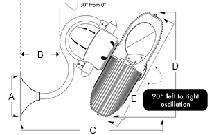 90 degrees left to right oscillation